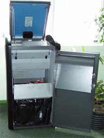 The Trash Compactor, the BigBelly is the world's only solar-powered cordless compaction system. It uses the sun's energy to automatically compact trash at the point of disposal, dramatically increasing capacity by 5 times within the same footprint as ordinary receptacles and can operate for a day on the equivalent energy it takes to make a piece of toast.
